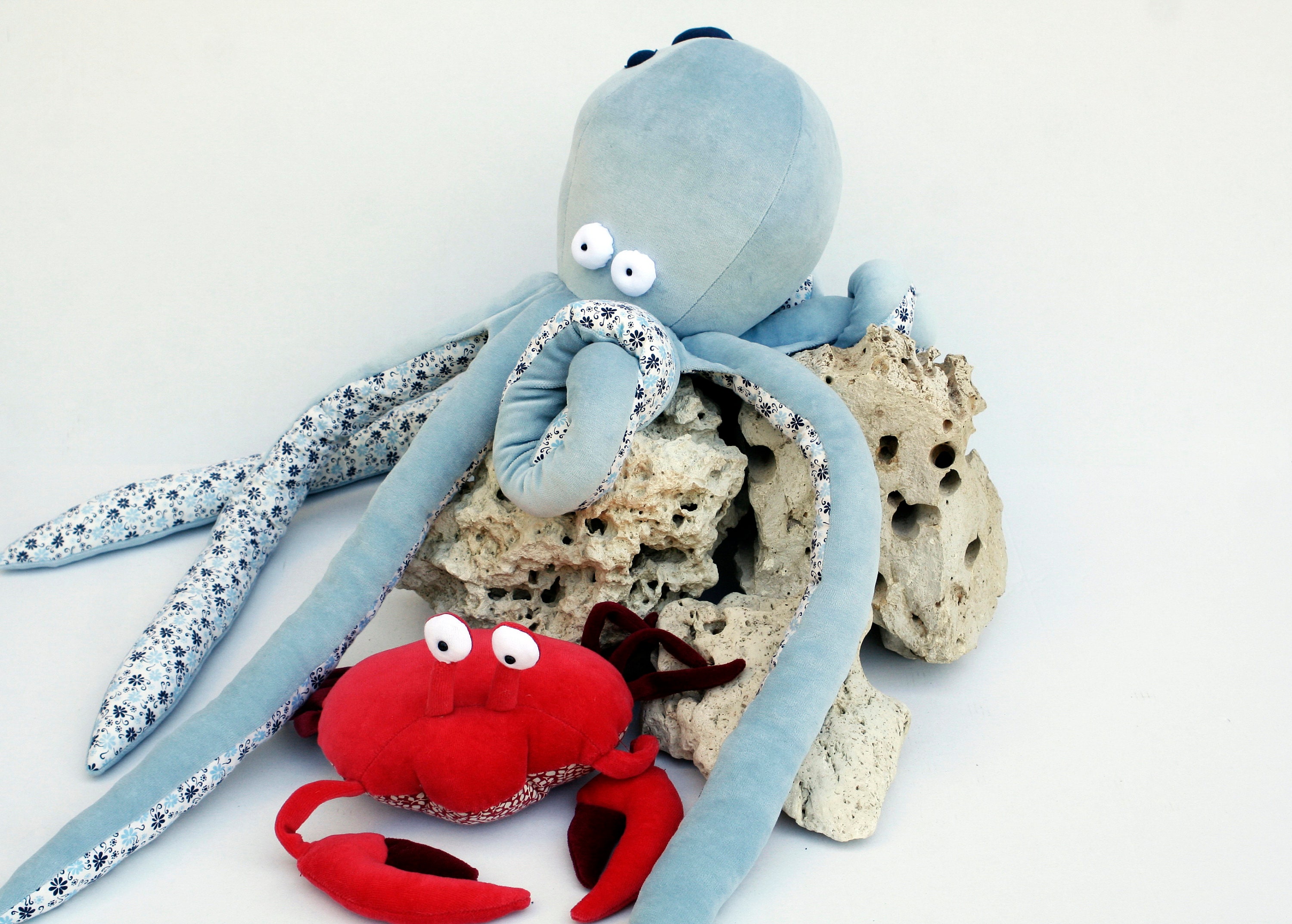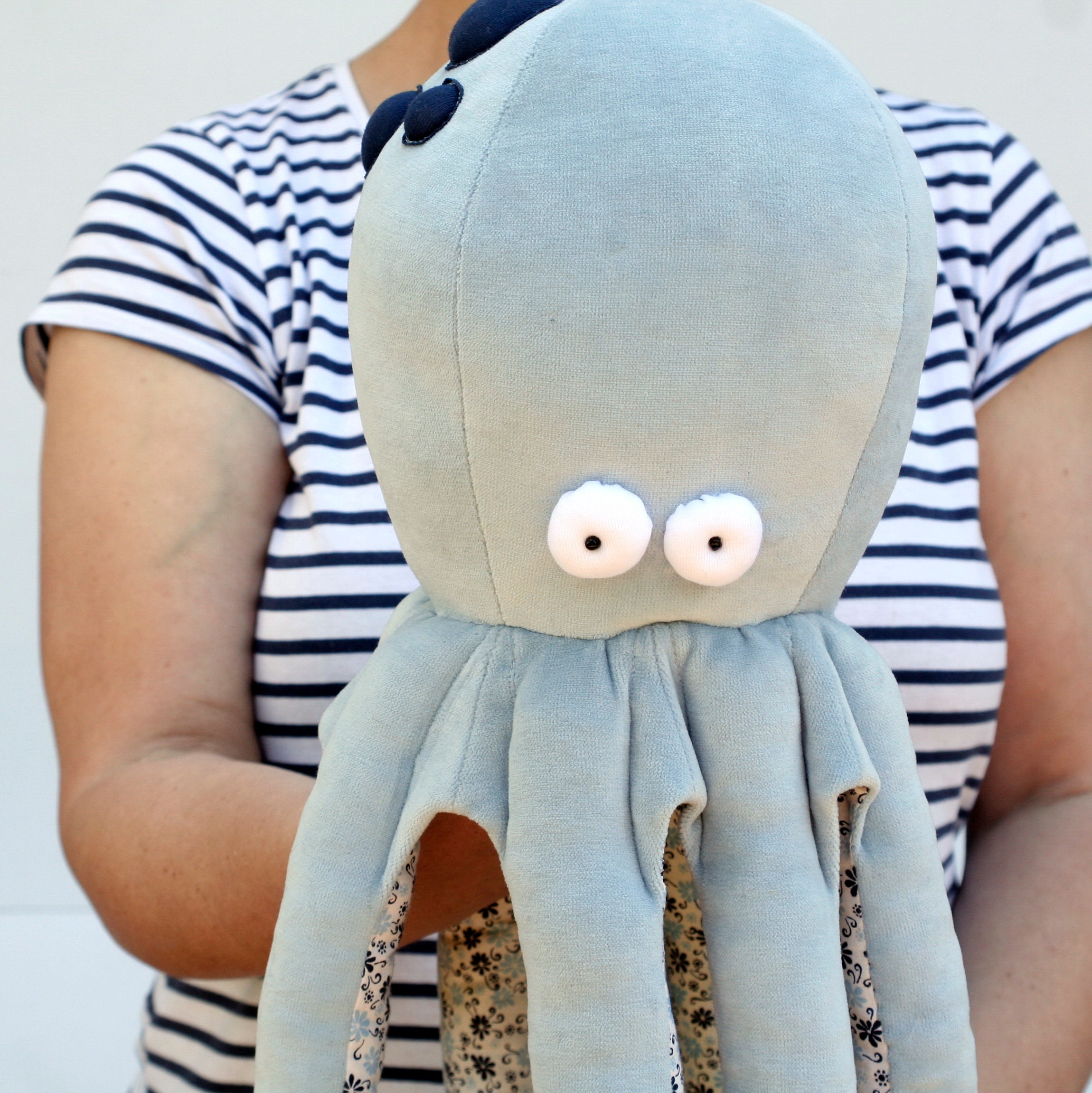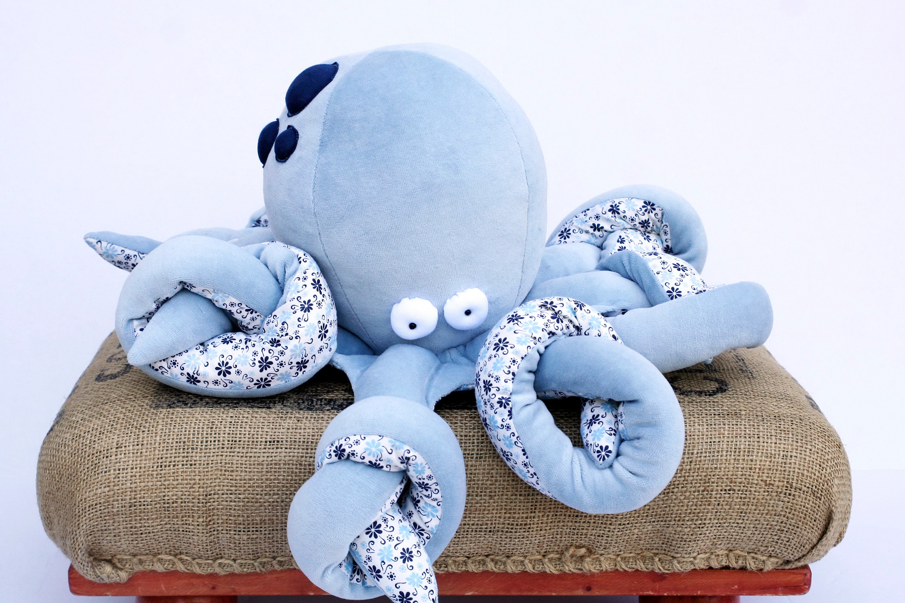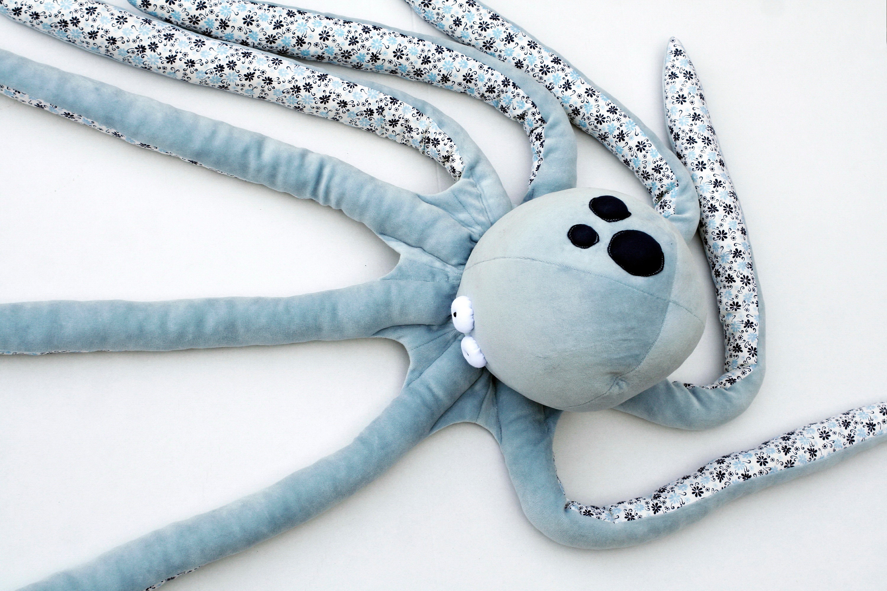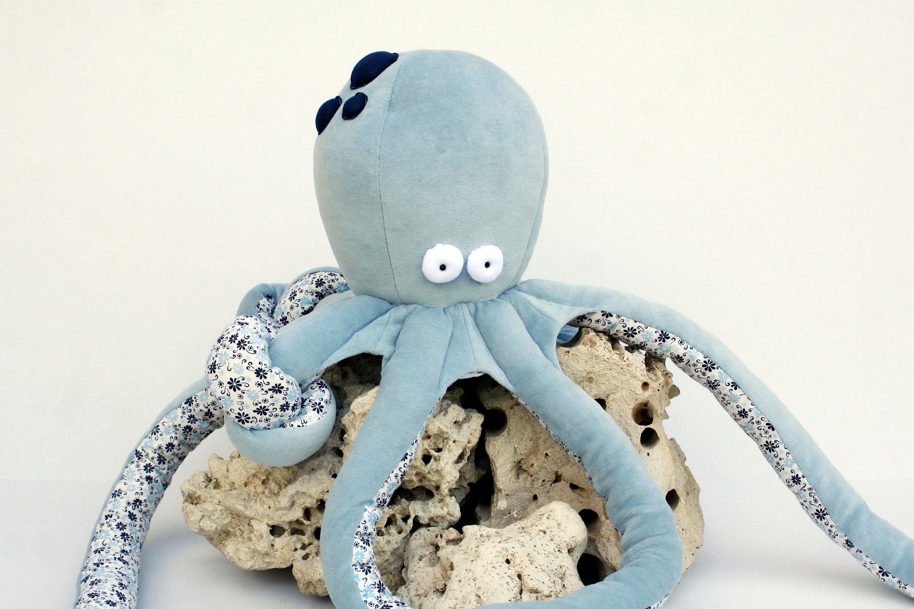 This funny Octopus has long tentacles. It is a charming decor for a beachy or maritime themed nursery or a nice sleepig fellow.