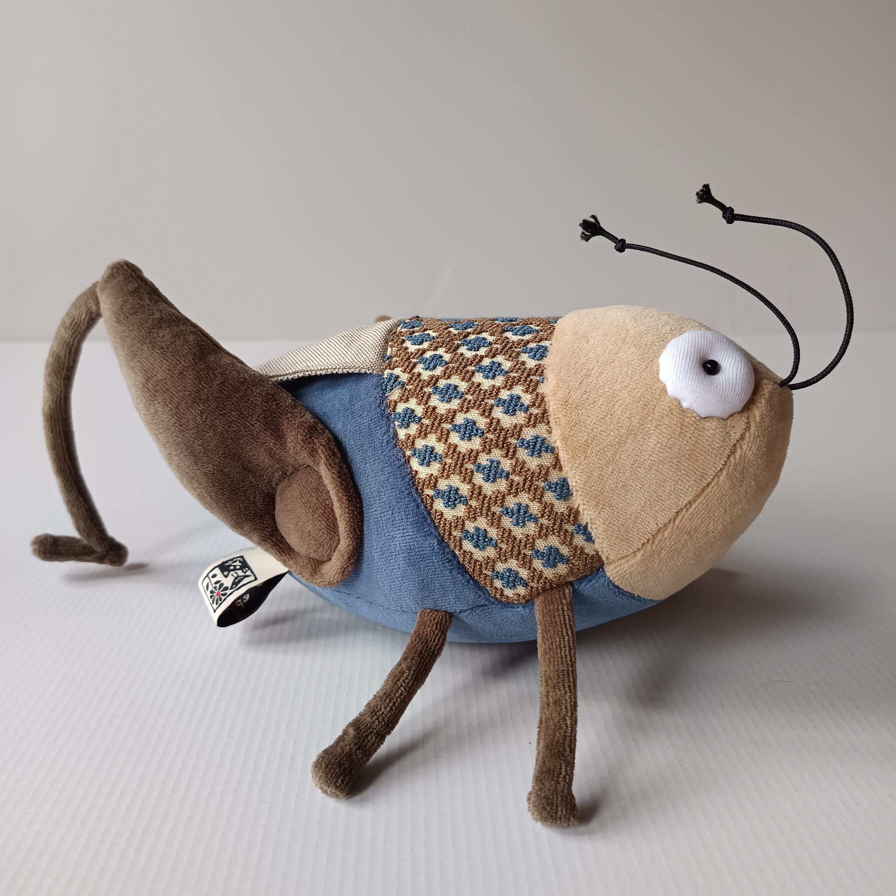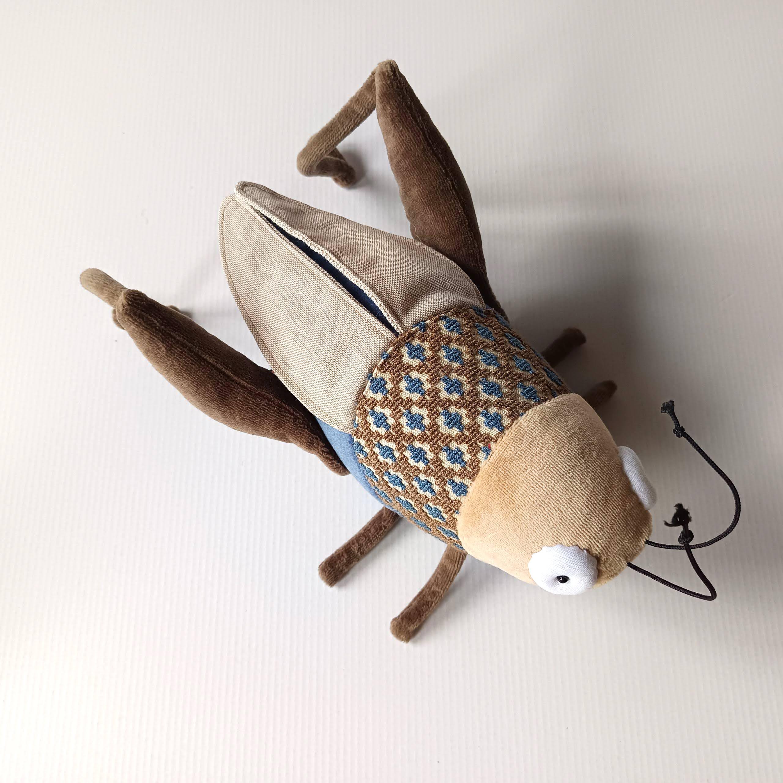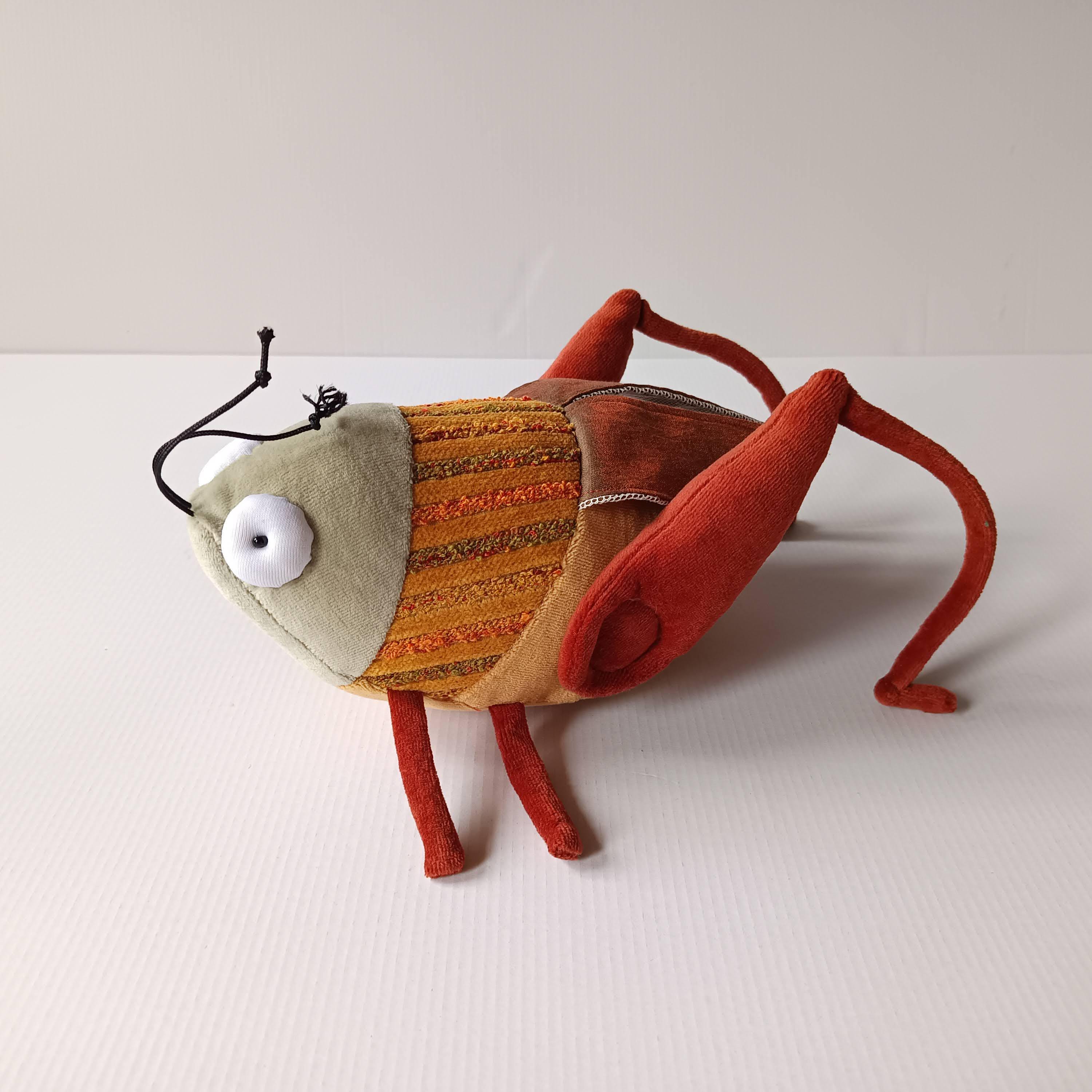 Each plush cricket is individually handcrafted by me, using a combination of plush and upholstery fabrics in a delightful array of colors. The body showcases a harmonious blend of soft plush materials, providing a delightful tactile experience. The vibrant upholstery fabrics add a pop of personality and lend an artistic touch to the overall design.