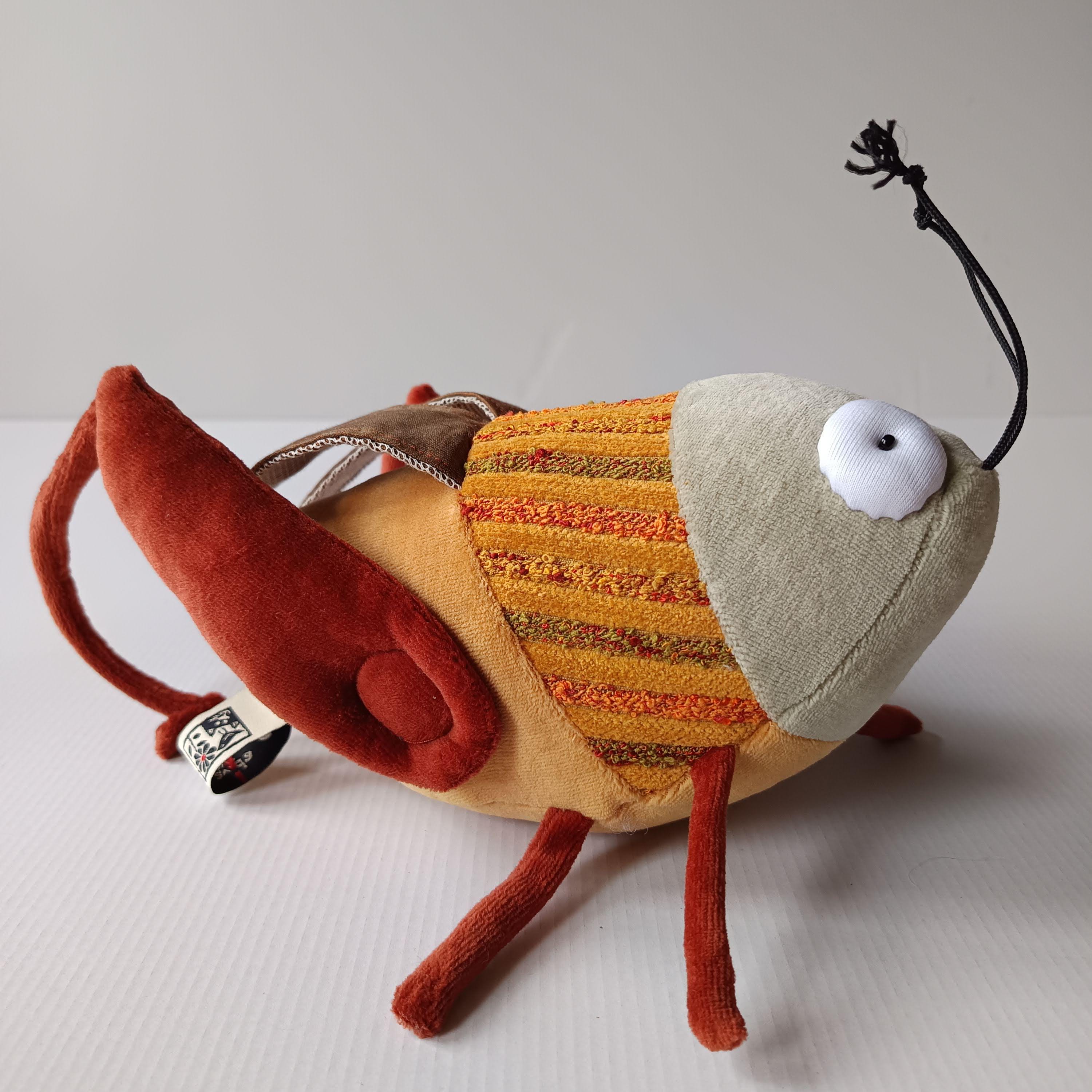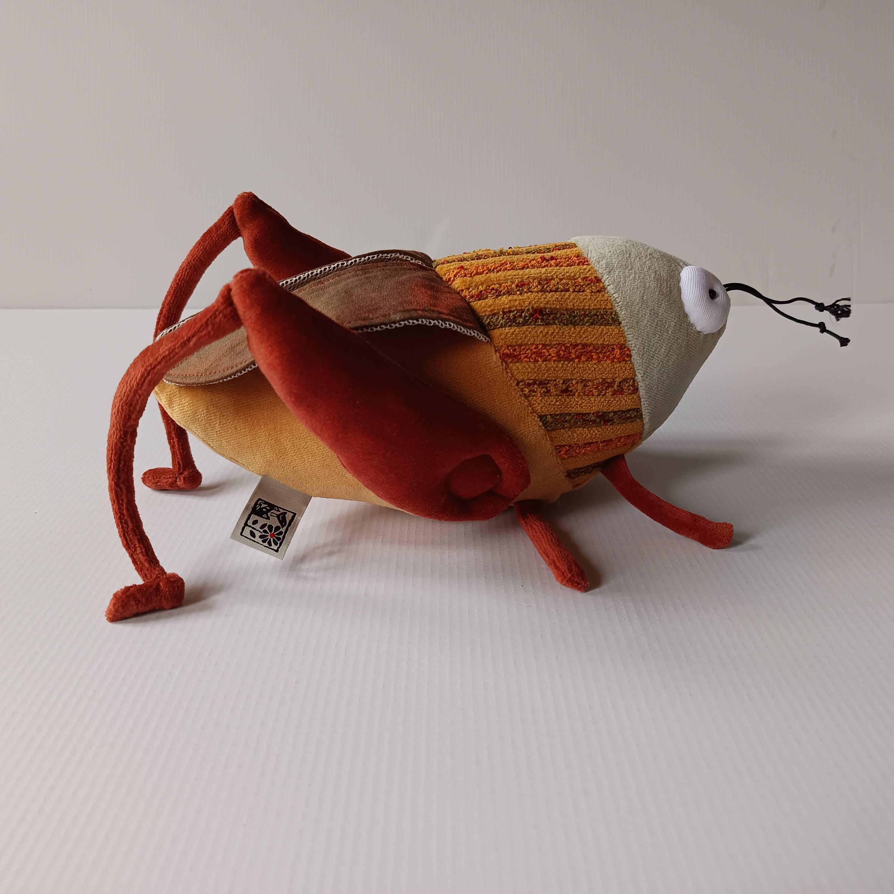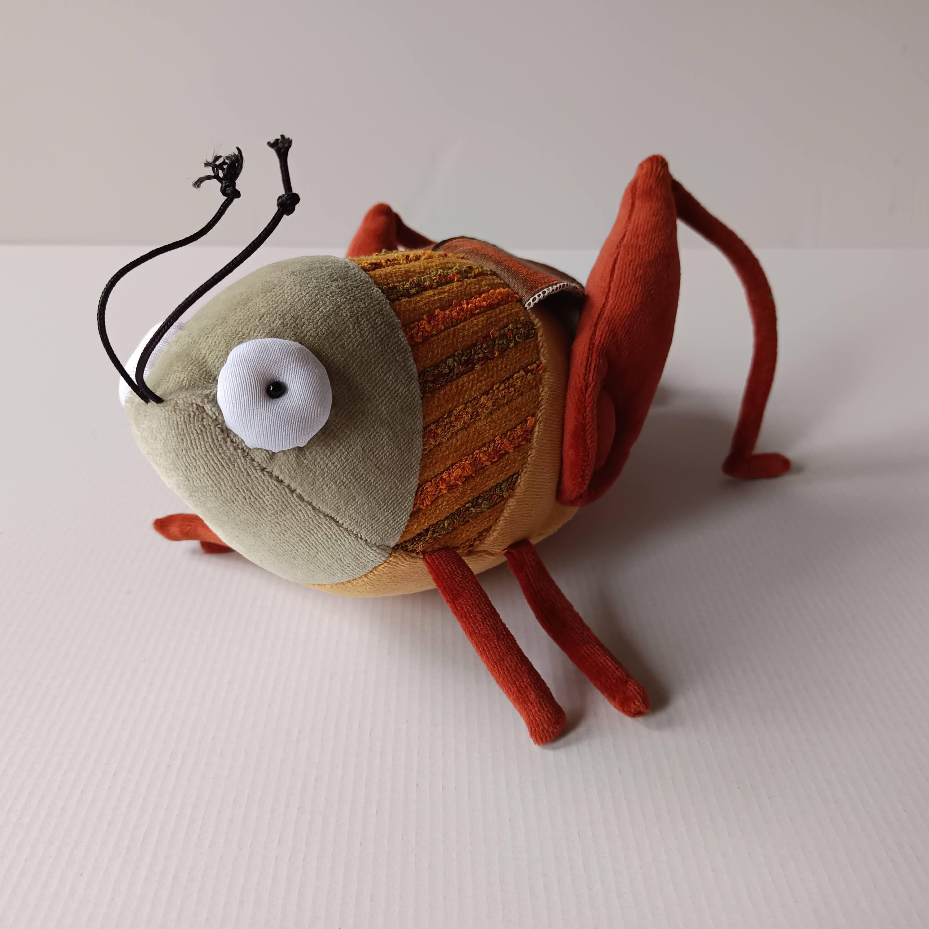 Each plush cricket is individually handcrafted by me, using a combination of plush and upholstery fabrics in a delightful array of colors. The body showcases a harmonious blend of soft plush materials, providing a delightful tactile experience. The vibrant upholstery fabrics add a pop of personality and lend an artistic touch to the overall design.