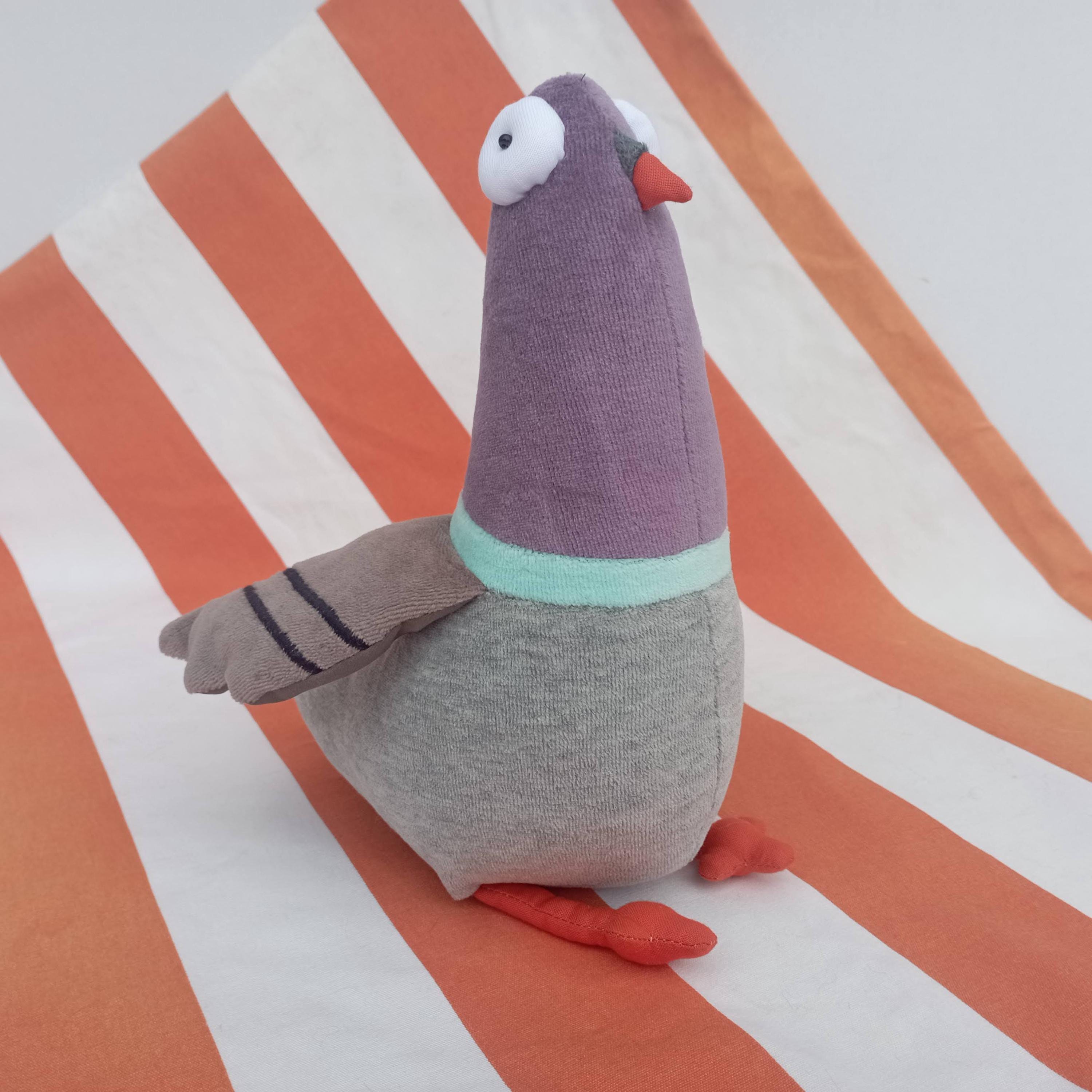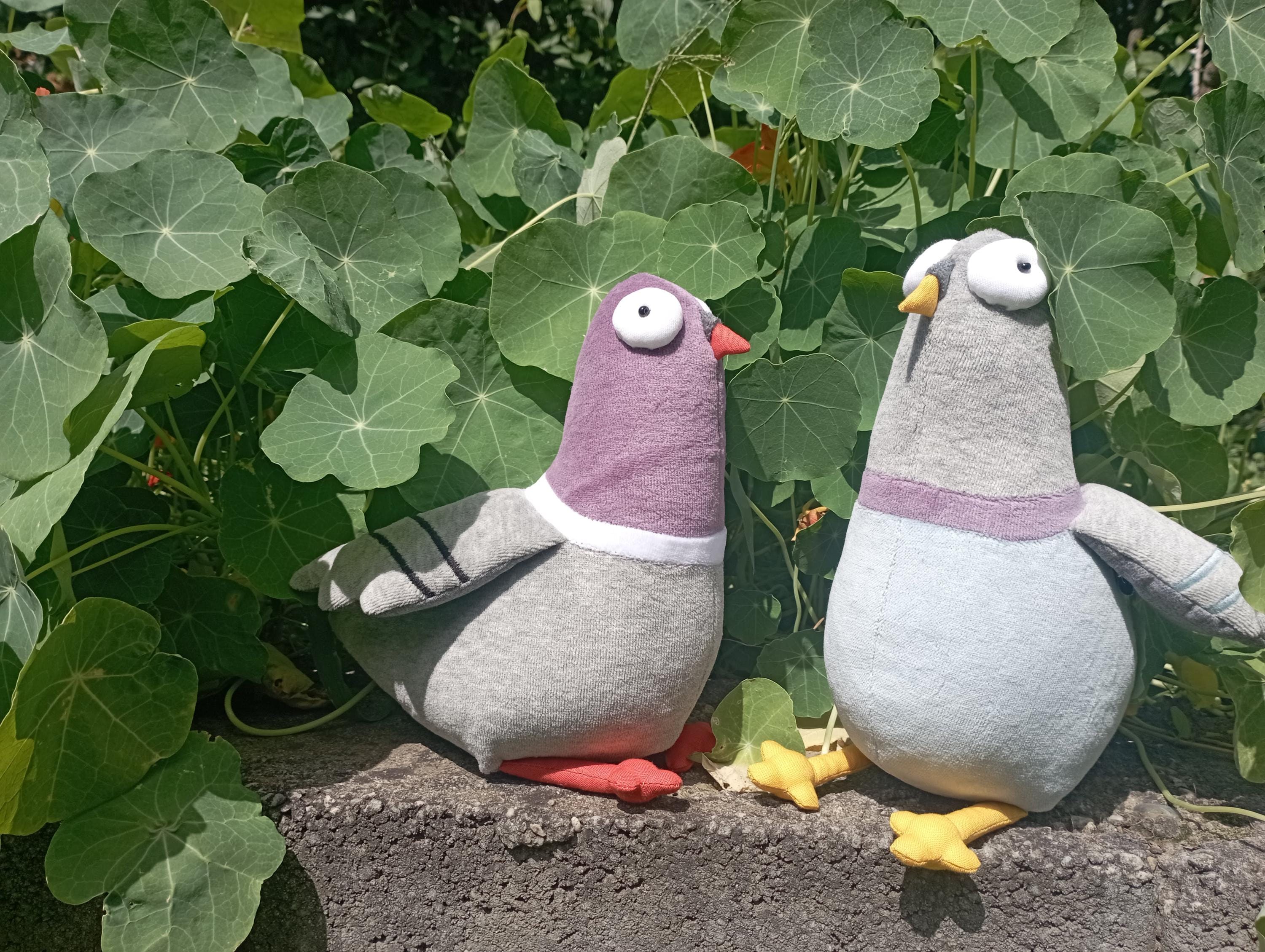 Stuffed Dule of Pigeons Muma toys handmade by Andrea Vida.