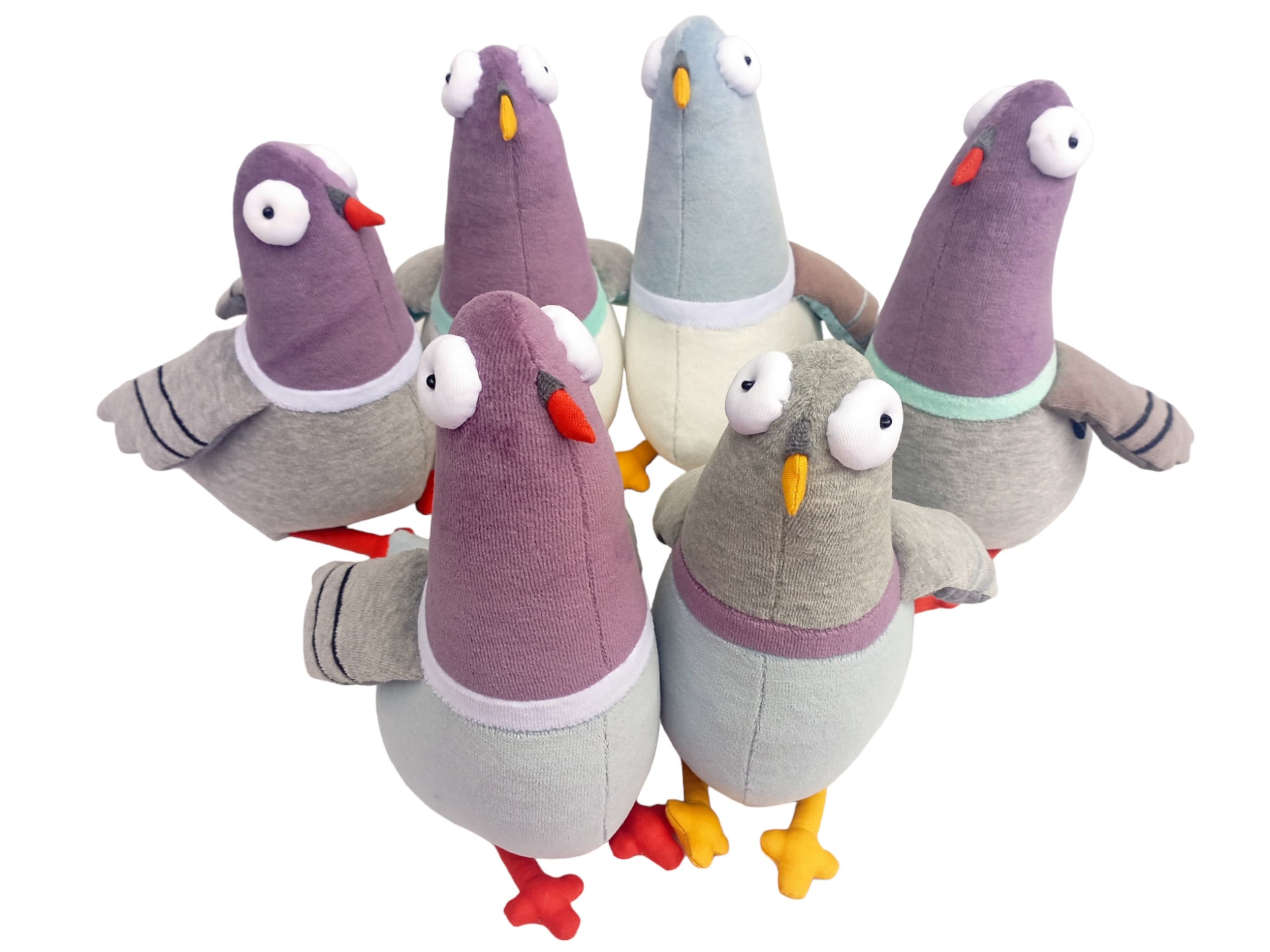 All birds are made of high quality baby plush fabric, Oeko Tex 100 certified. Beak is made of canvas. They have big pop eyes. Stuffed with high quality polifill.