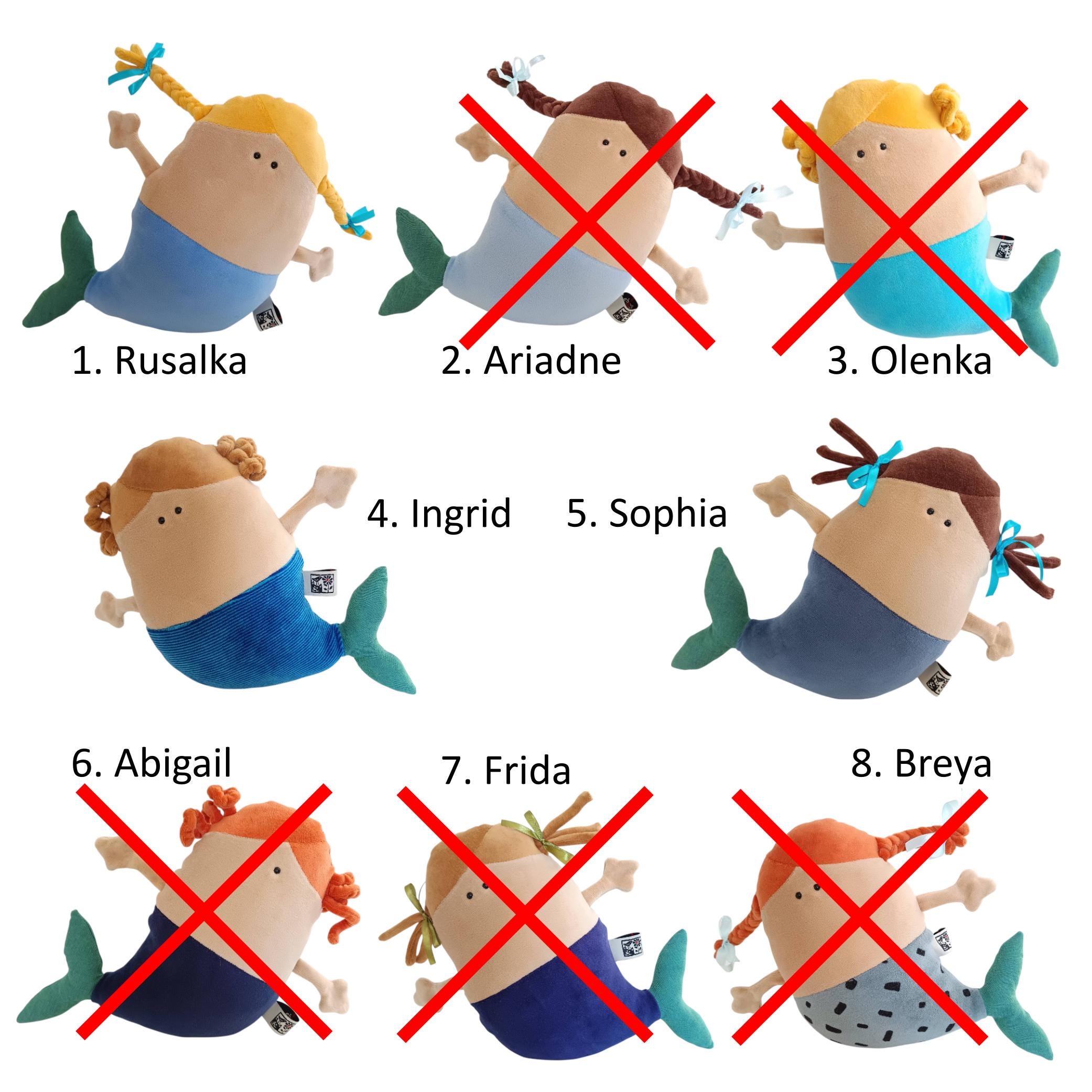 I made eight Mermaids (now I have 3), all unique and one of a kind. The last picture show all of them, I'm going to update the availability.