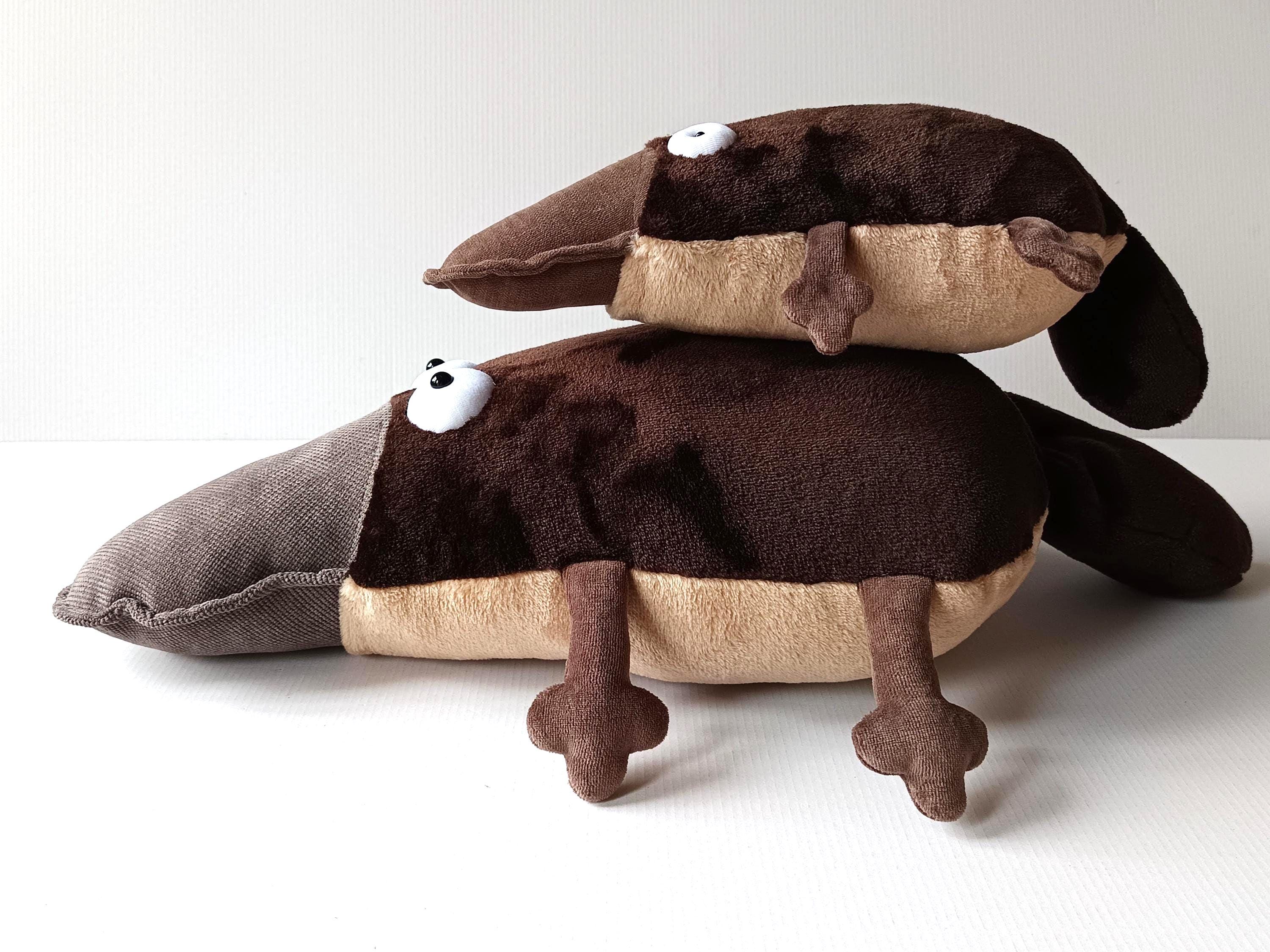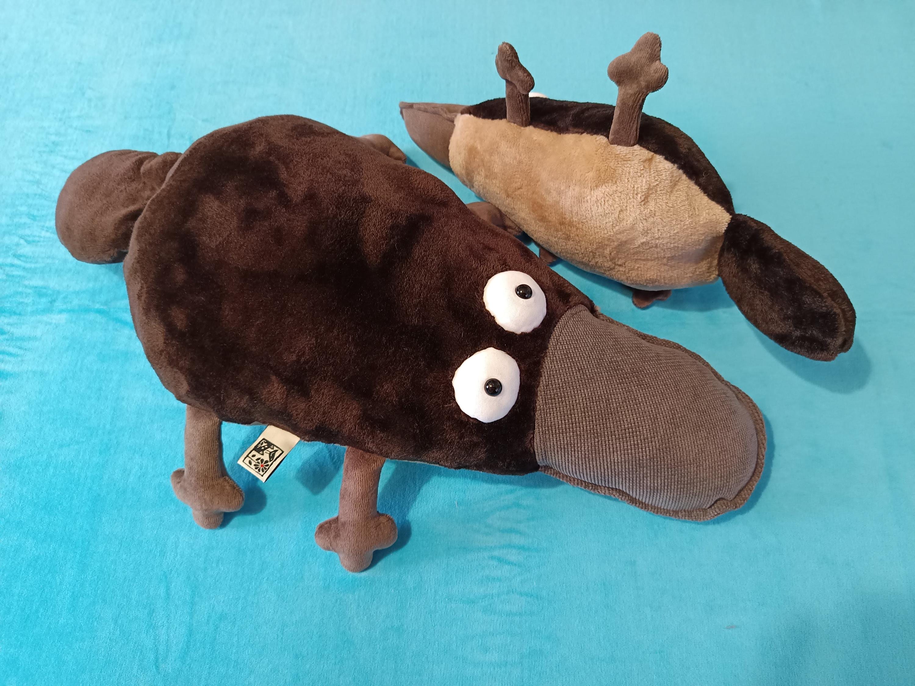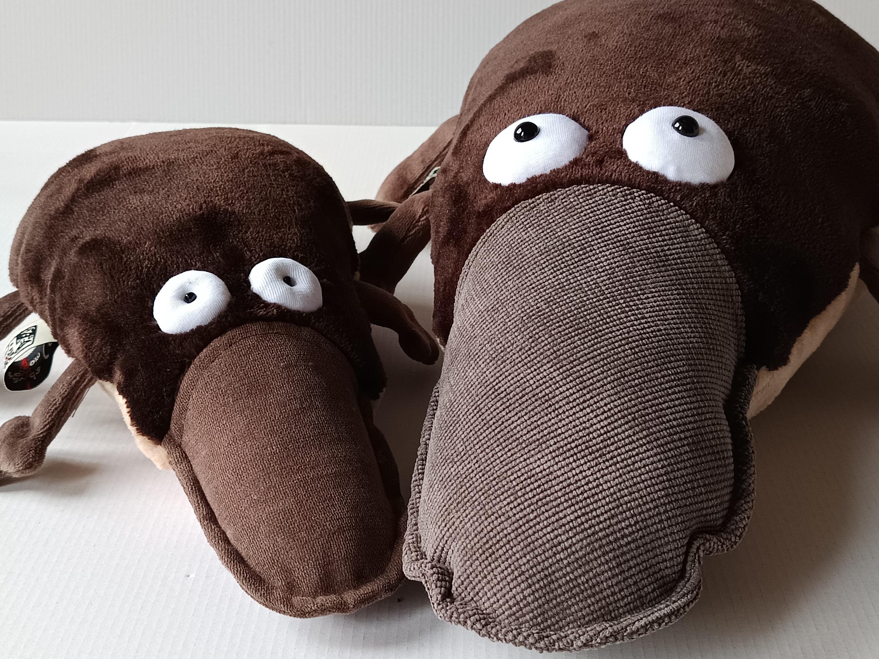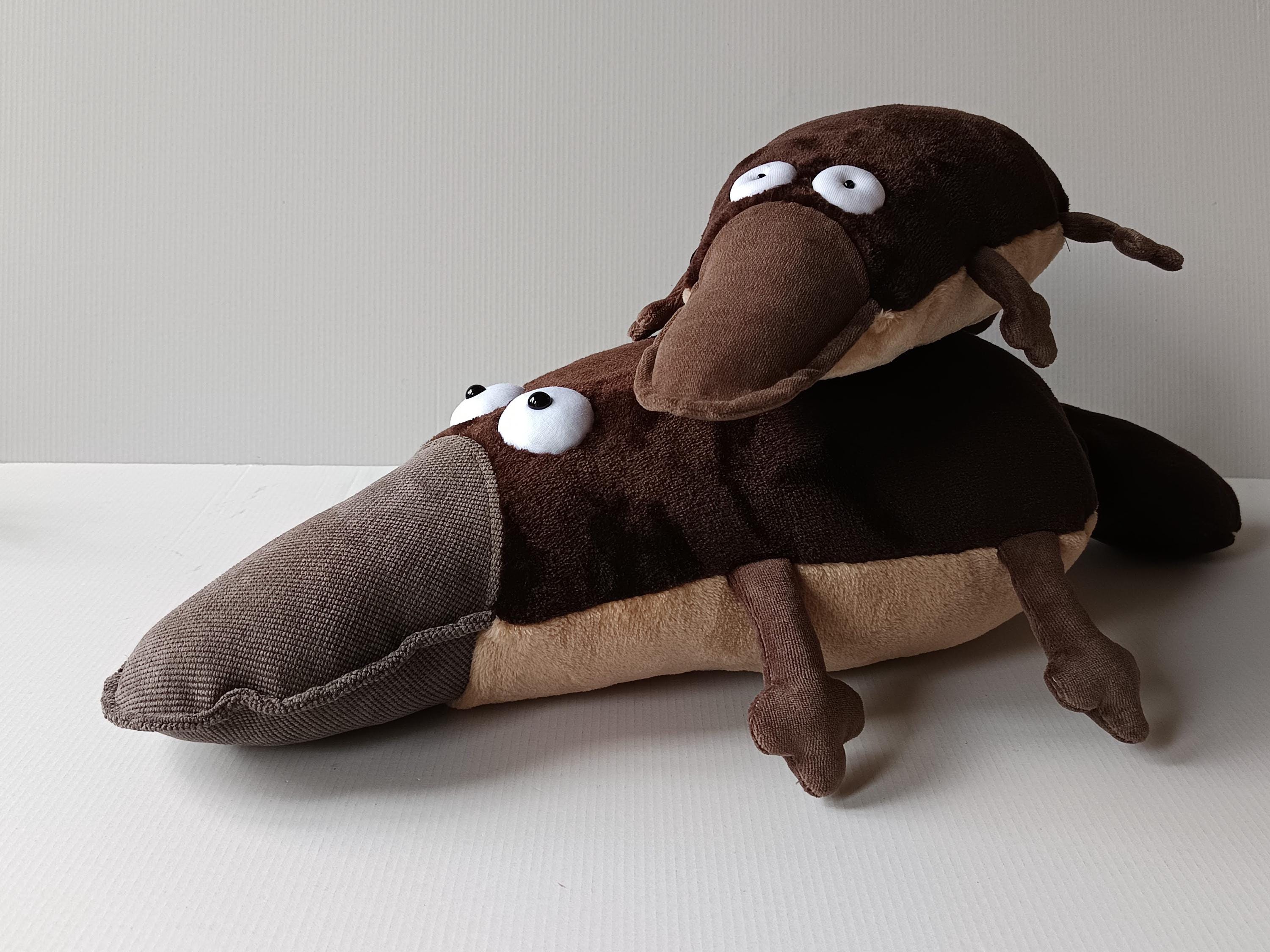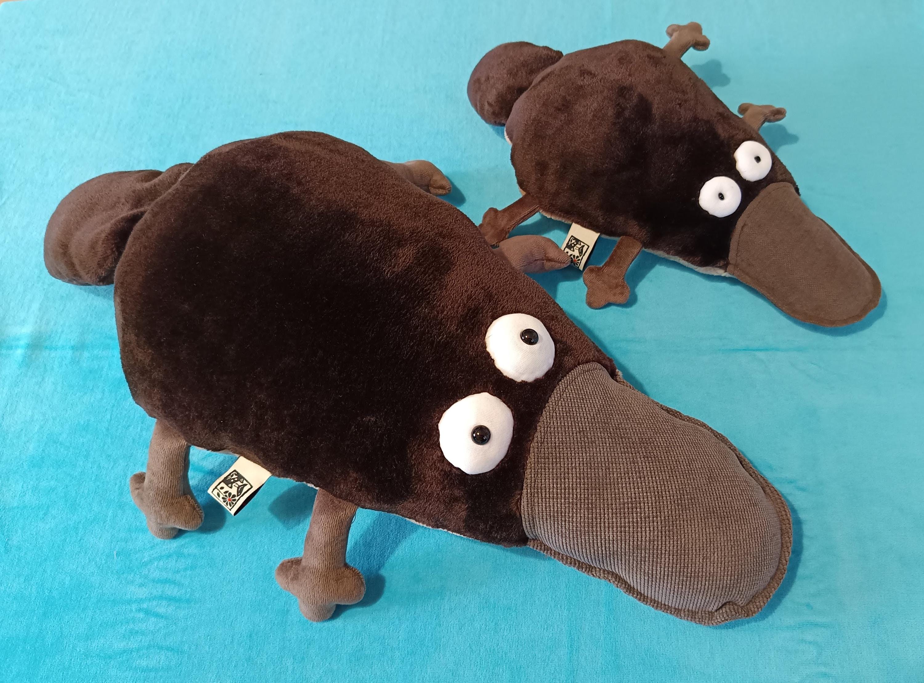 Big one (Pillow Platypus) is about 60 cm (24") long from the tip of the bill to the end of the tail
