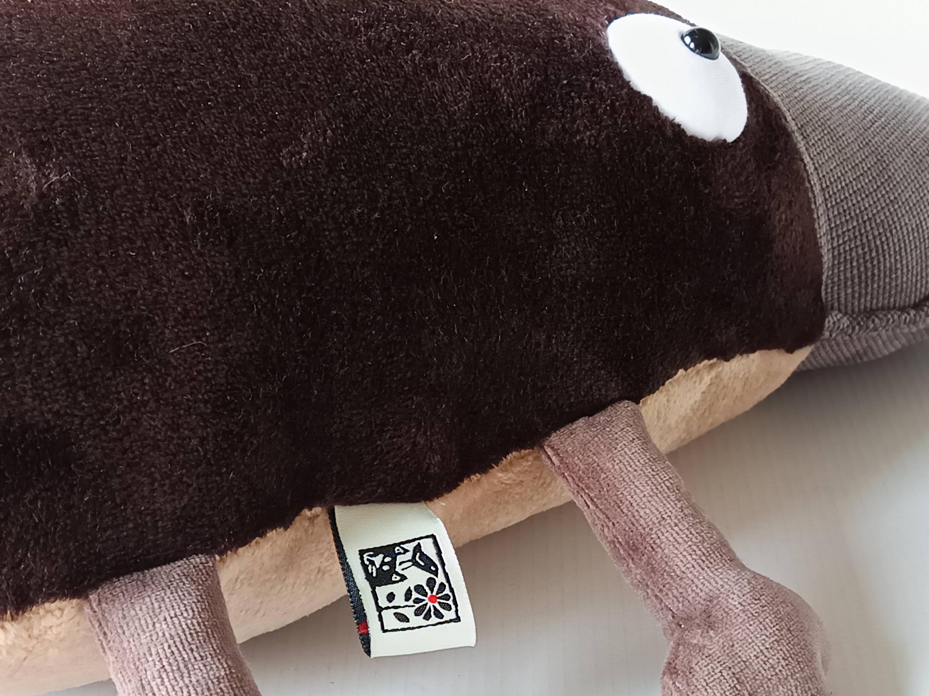 Body is made of soft and furry wellsoft, Oeko Tex 100 Certified. Limbs are made of plush. Beak is made of upholstery.