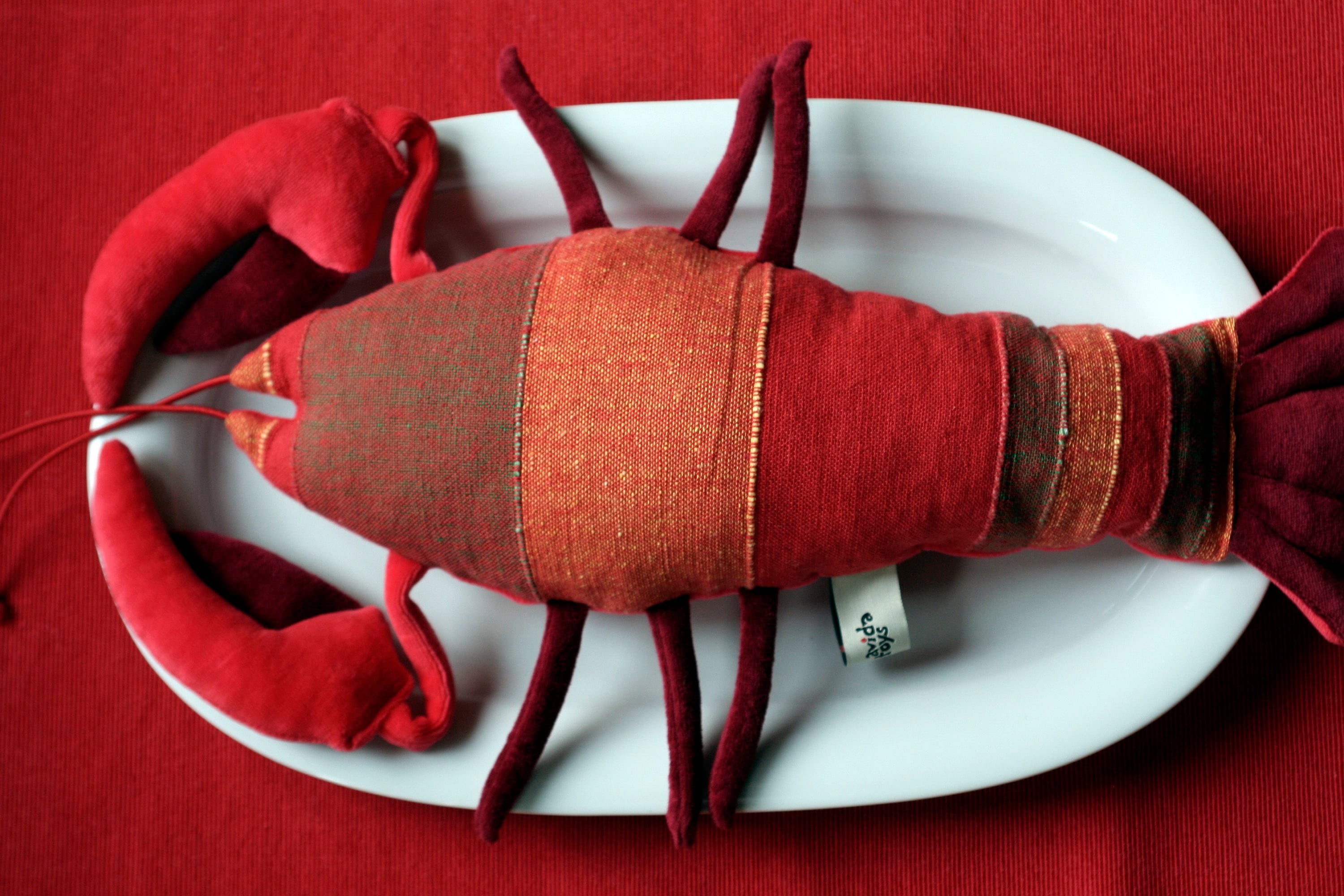 The Lobster is stuffed with high quality siliconized polyfill. The Lobster is machine washable on low temperature, can be tumble dried.