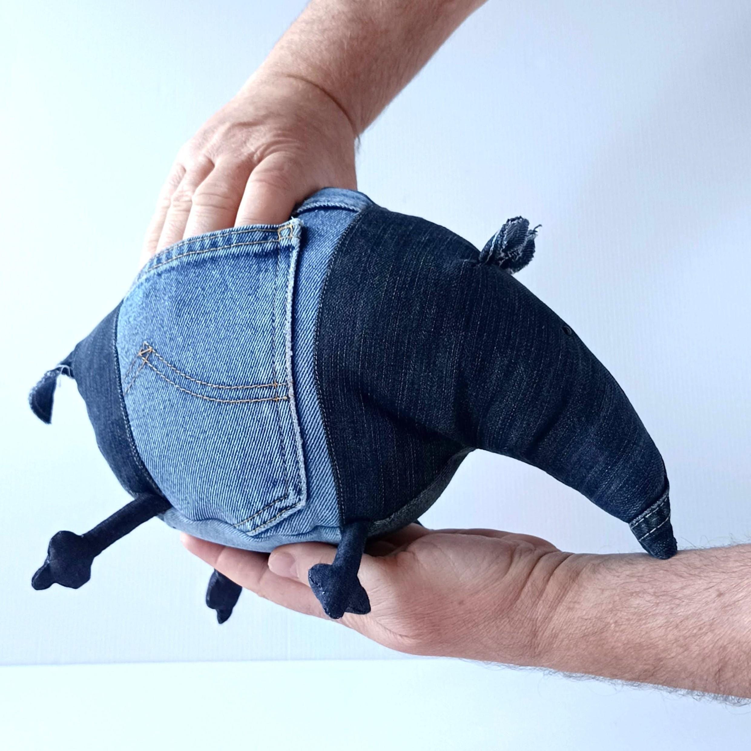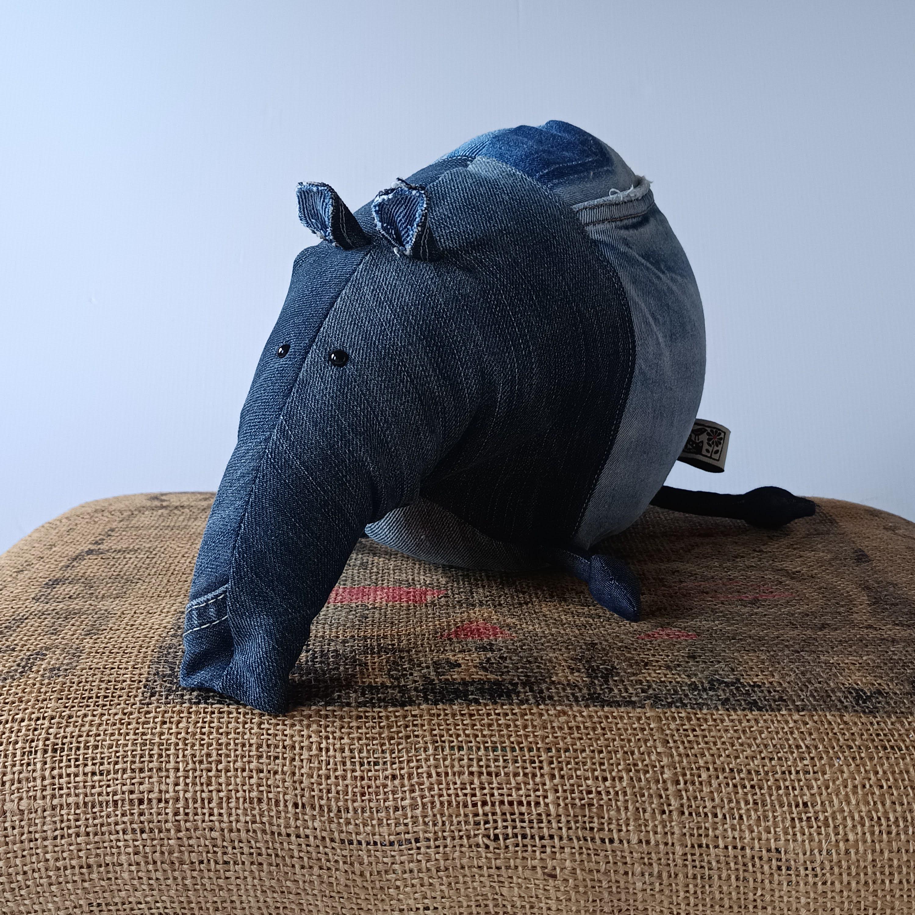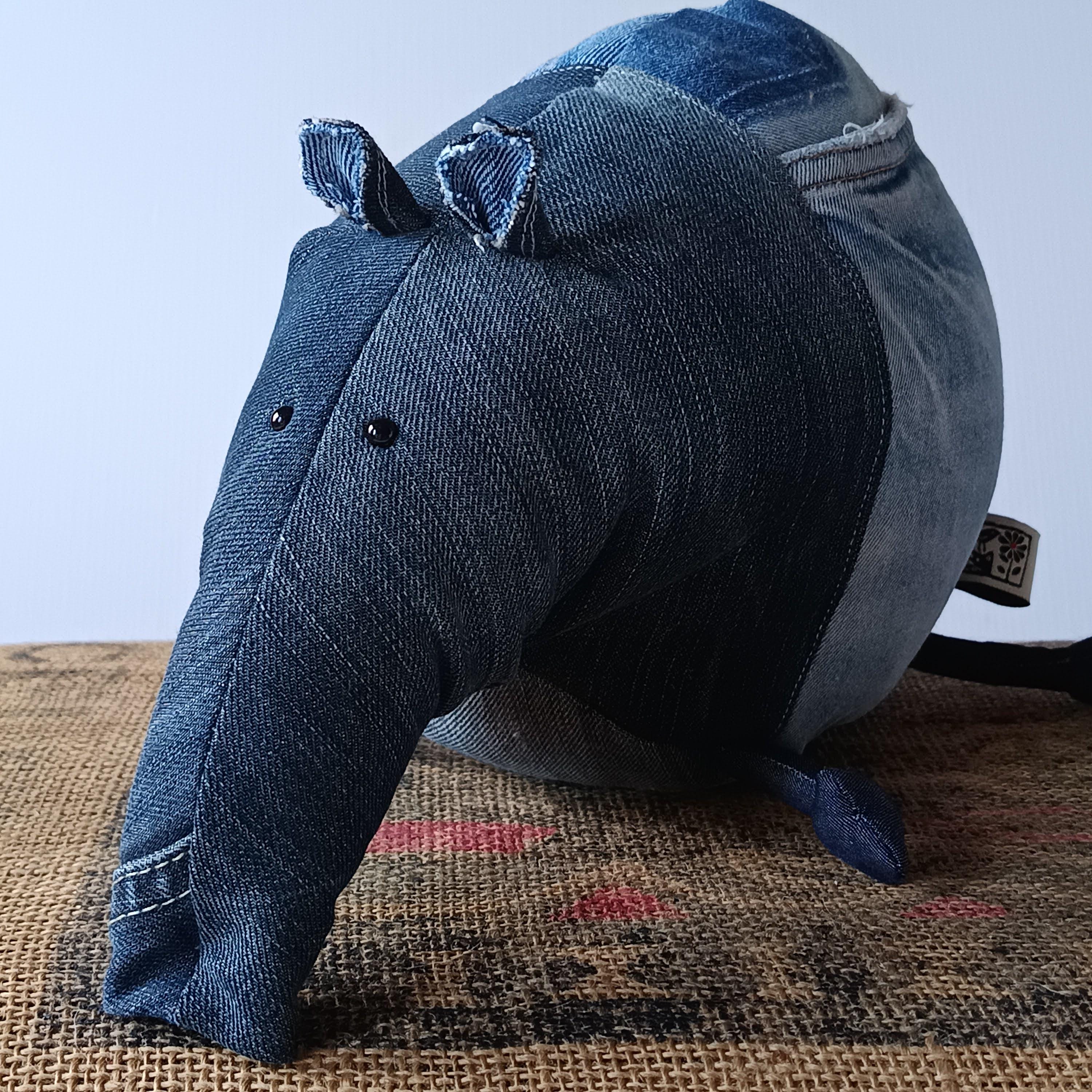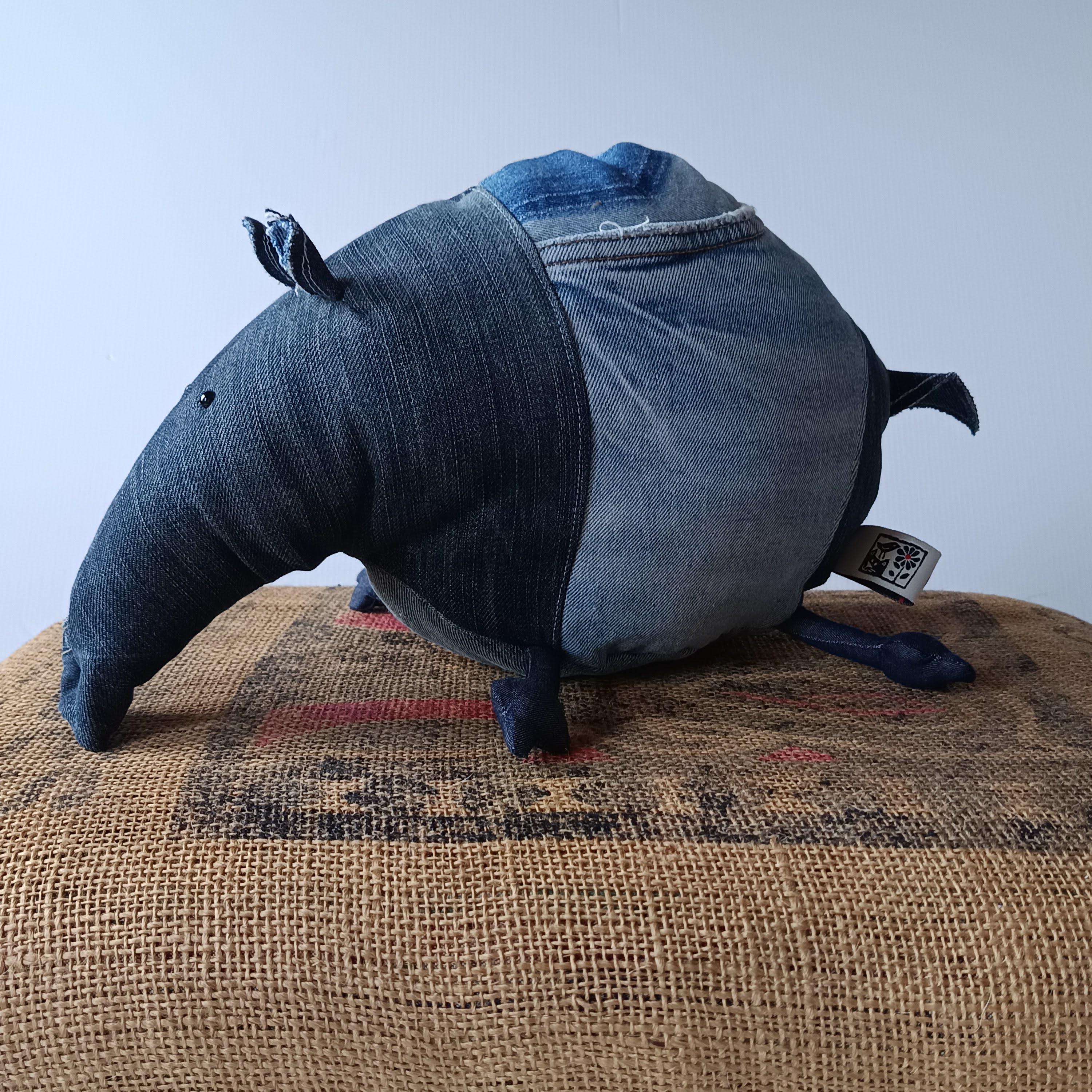 This is Edvin, the funny Big Blue Jeans Tapir made of old blue jeans.