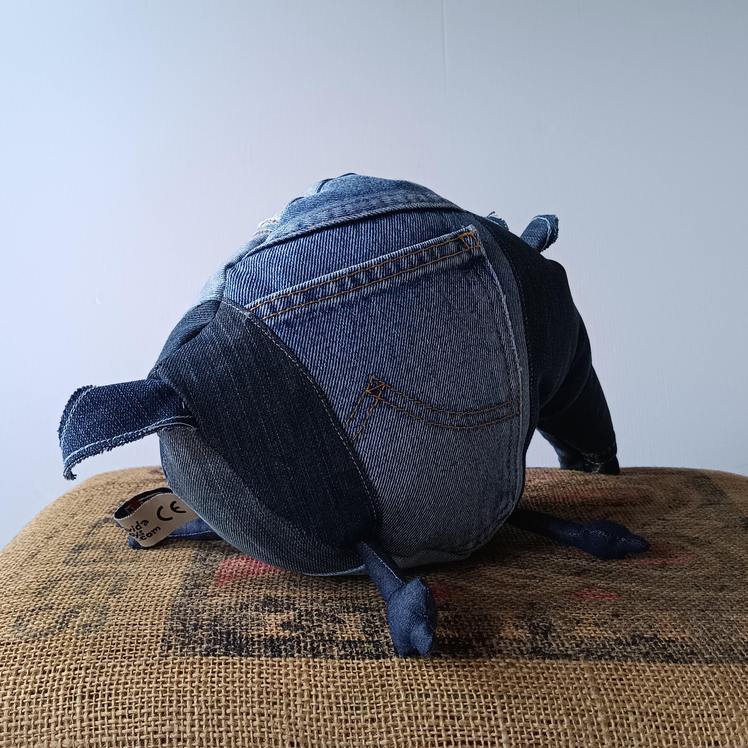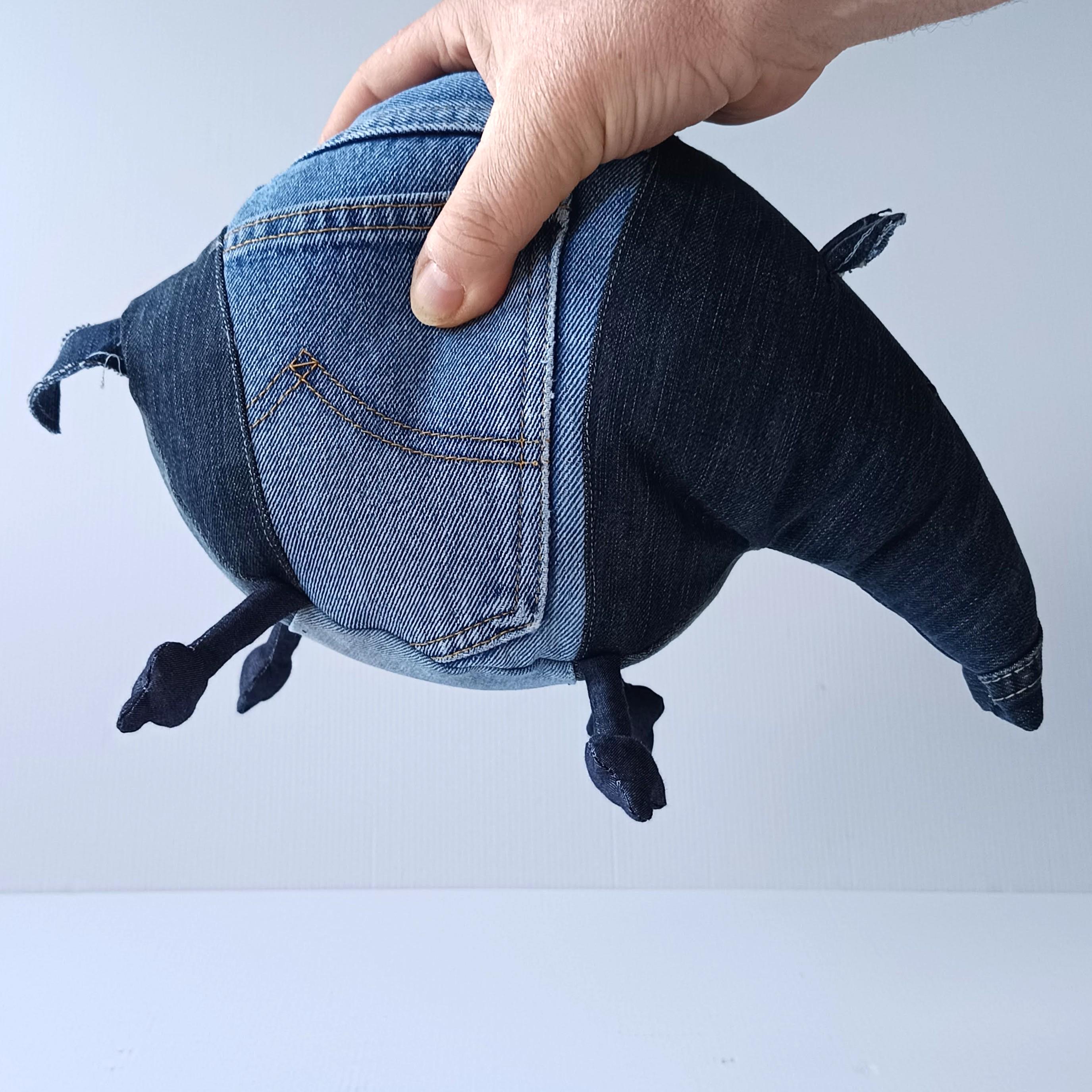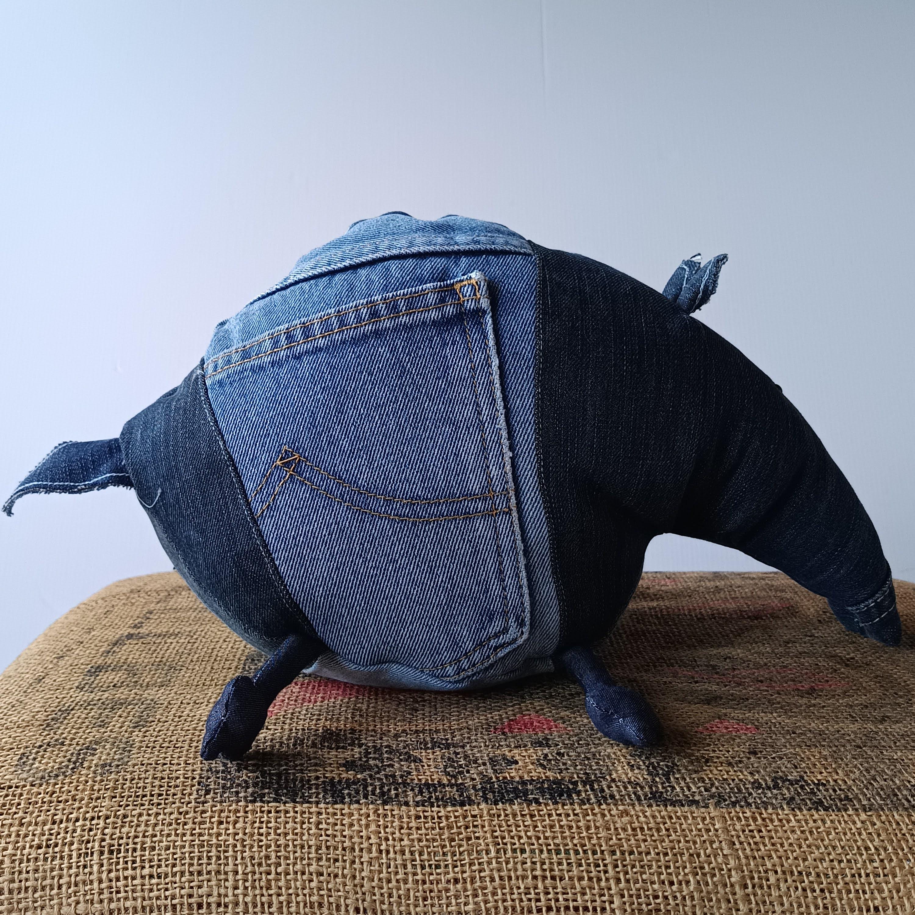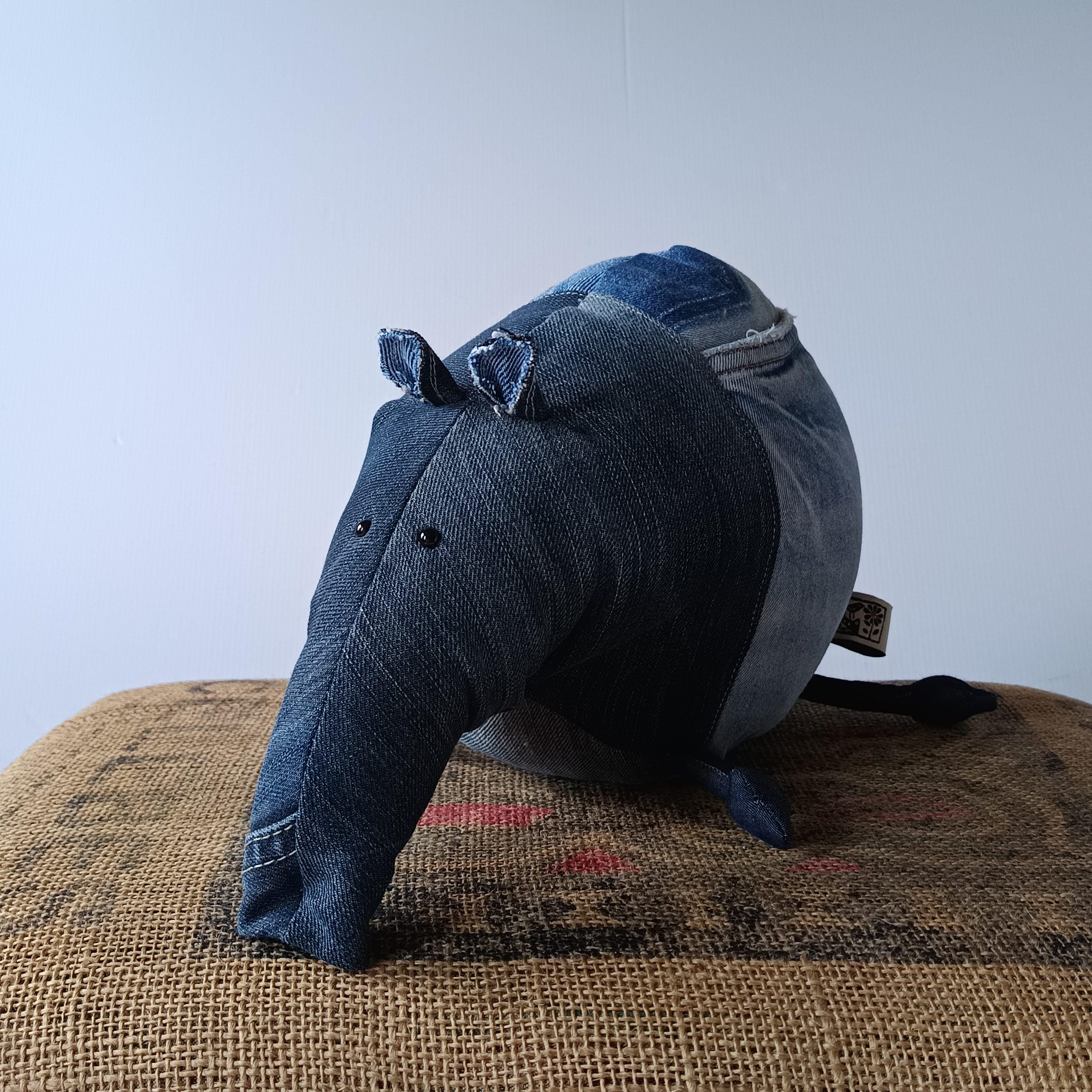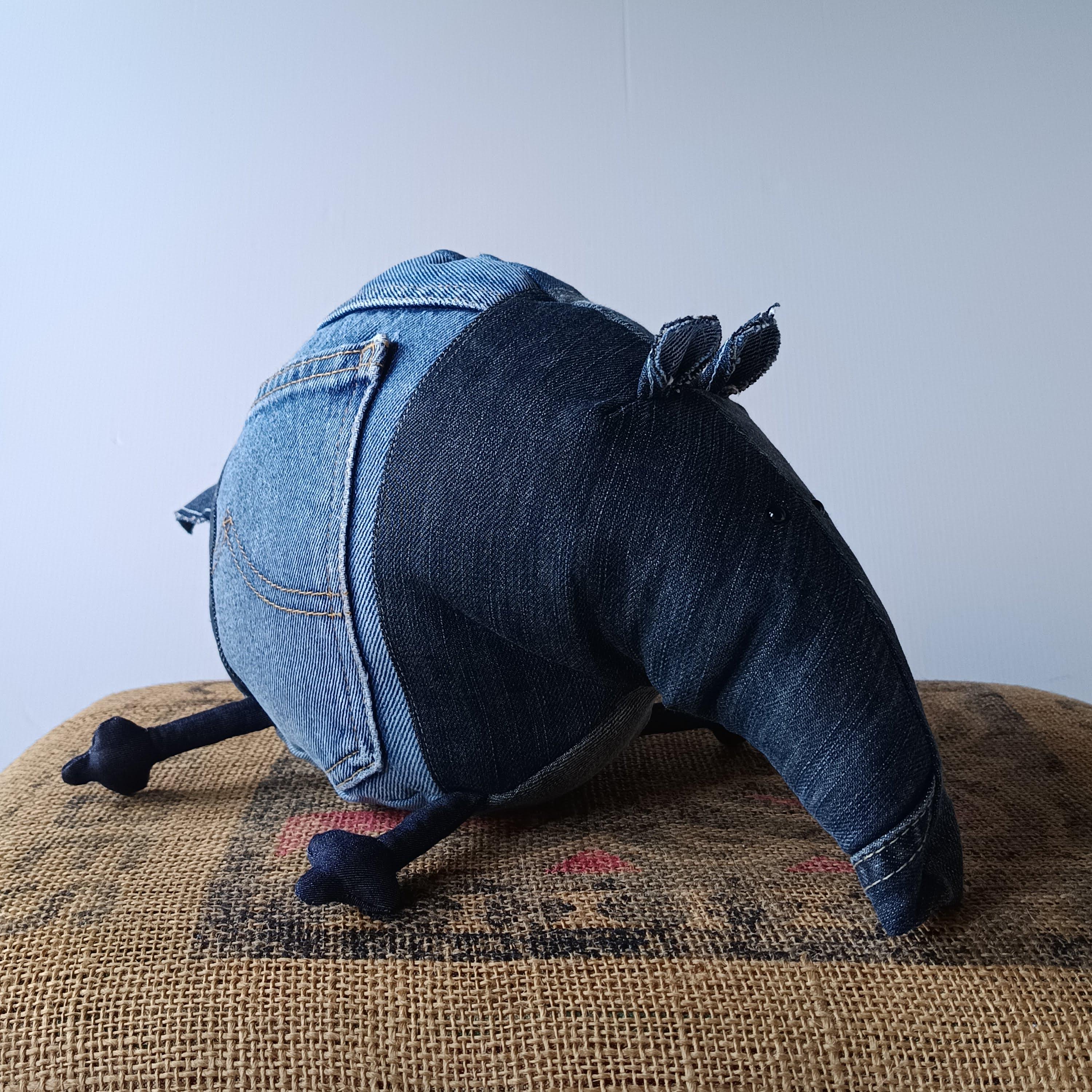 This is Edvin, the funny Big Blue Jeans Tapir made of old blue jeans.