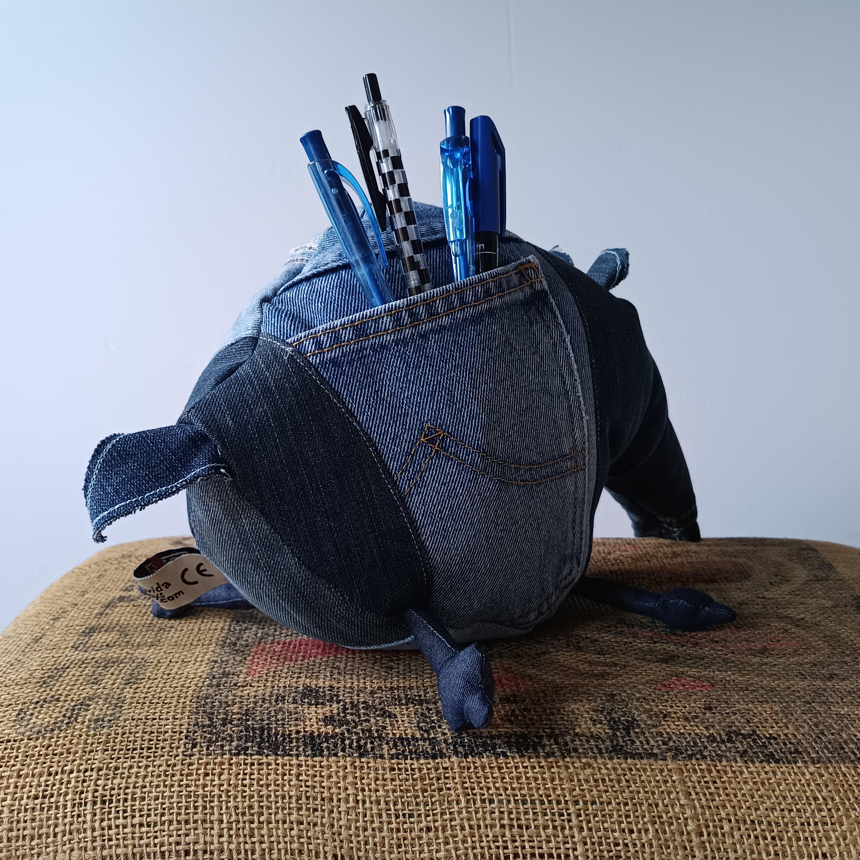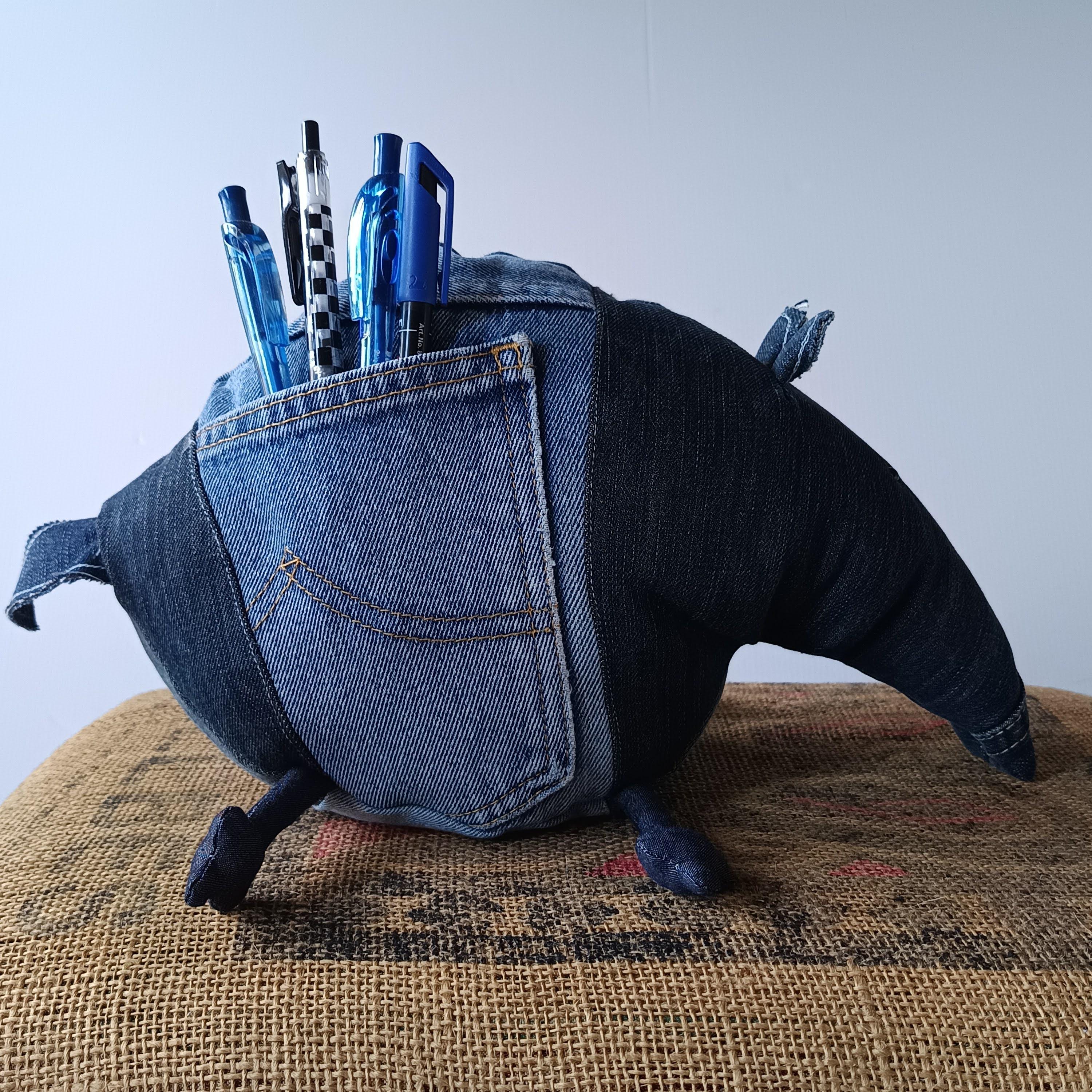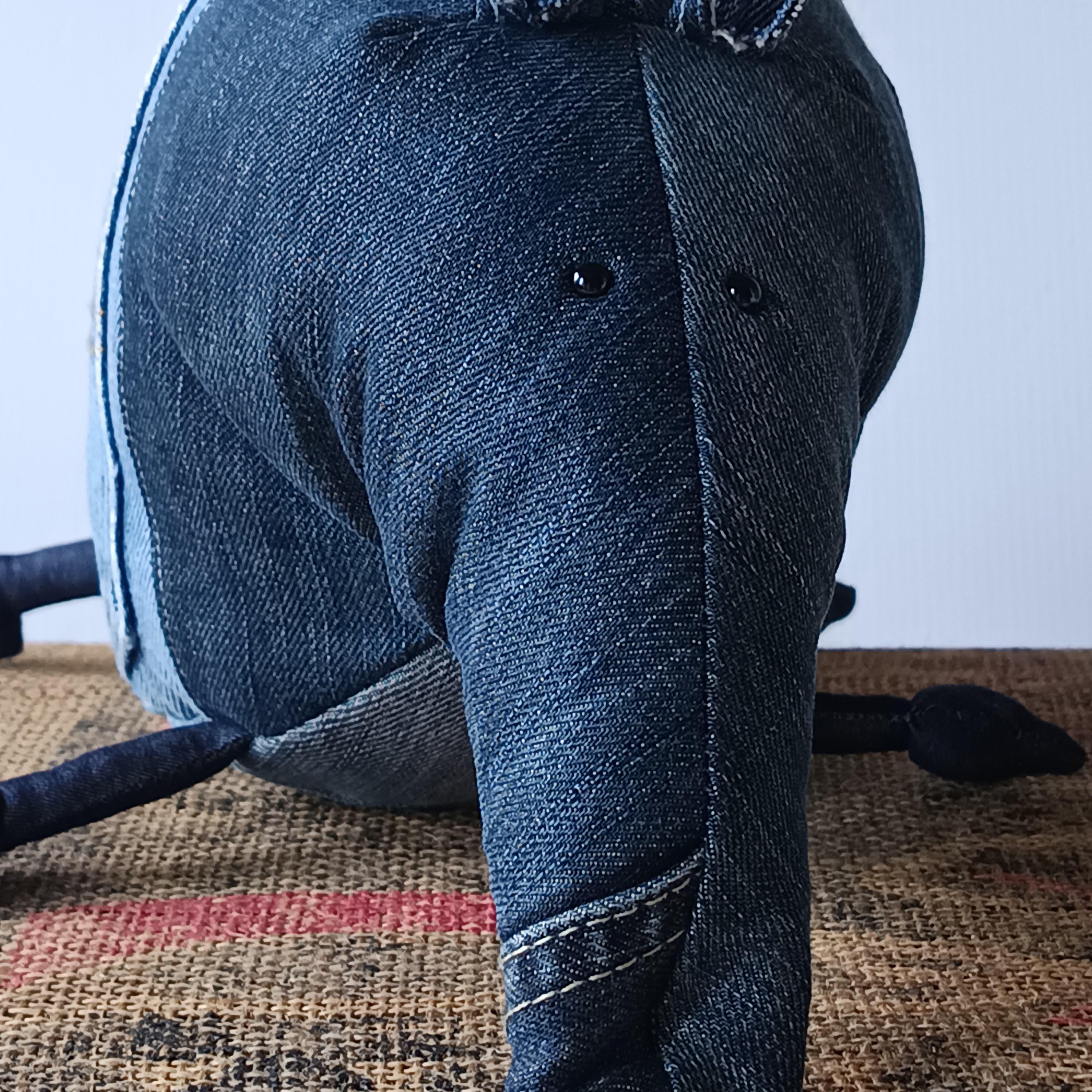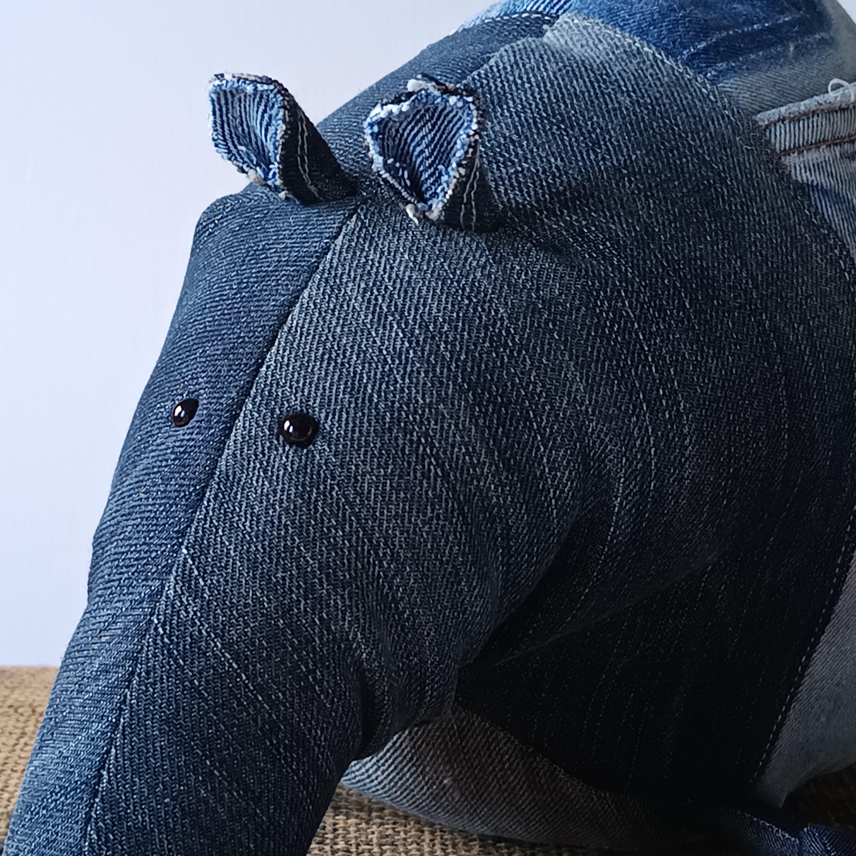 This is Edvin, the funny Big Blue Jeans Tapir made of old blue jeans.