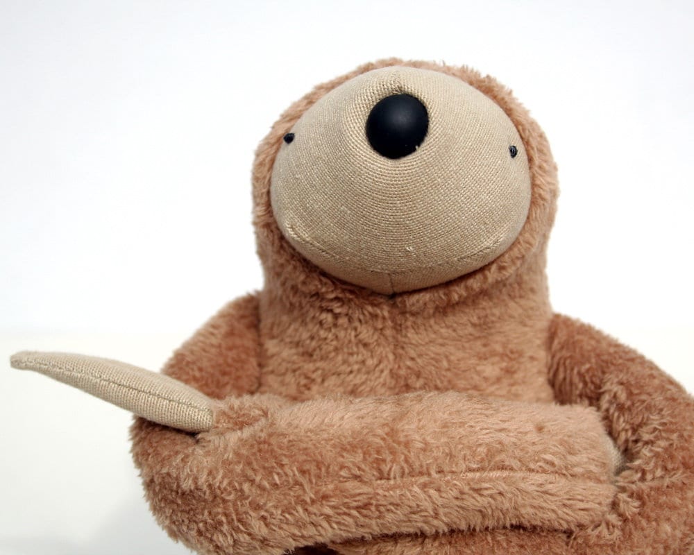 This is Peanut Sloth, the slowest creature in the jungle. He is a perfect sleeping fellow or hilarious decoration to the nursery. His body is 9 inch (23 cm) and has long arms and legs.